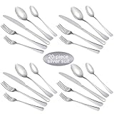 N,A - Sturdy structure our flatware set is made of food grade stainless steel it is features rustproof and corrosion resistance nickel free ensures safe to use for your daily meal use Versatile use these kitchen utensils has classic simple design is suitable for all casual or formal dining like home dinner party or restaurant A terrific gift for christmas halloween housewarming and more Value set the 20pcs stainless steel cutlery set comes with 4 regular forks 4 salad forks 4 knives 4 soup spoons and 4 tea spoons Sturdy enough to not band easily rust resistant for durability