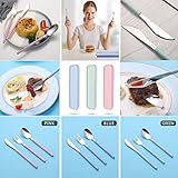 Ergonomically designedmany baby spoons and forks have handles that are too long and narrow for baby hands Our cutlerys ergonomic shortened our regular fork and spoon set and turn the handle 90 degrees which is purposely designed to fit your babys tiny hands and developing grip Cute designed for baby ideal as the first metal flatware set for ages 12 months and up The bright cheery colors and cute shape are loved by kids of all ages attract toddlers interest to eatingmake mealtime fun