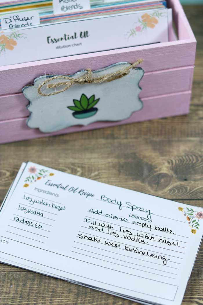 I really like the DIY recipe box to organize my recipes. I also have a printable essential oil binder that I use to track my inventory and favorite blends.