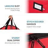 Reliable durability breathable zober artificial tree storage bags for large 9 ft Tree made from canvas heavyduty tear and waterproof fabric thatll lasts for many seasons to come Simple identification festive black and bright red holiday storage bag stands out in storage helping you easily locate your artificial christmas tree storage box An attached card slot lets you know exactly whats inside the storage container for christmas tree